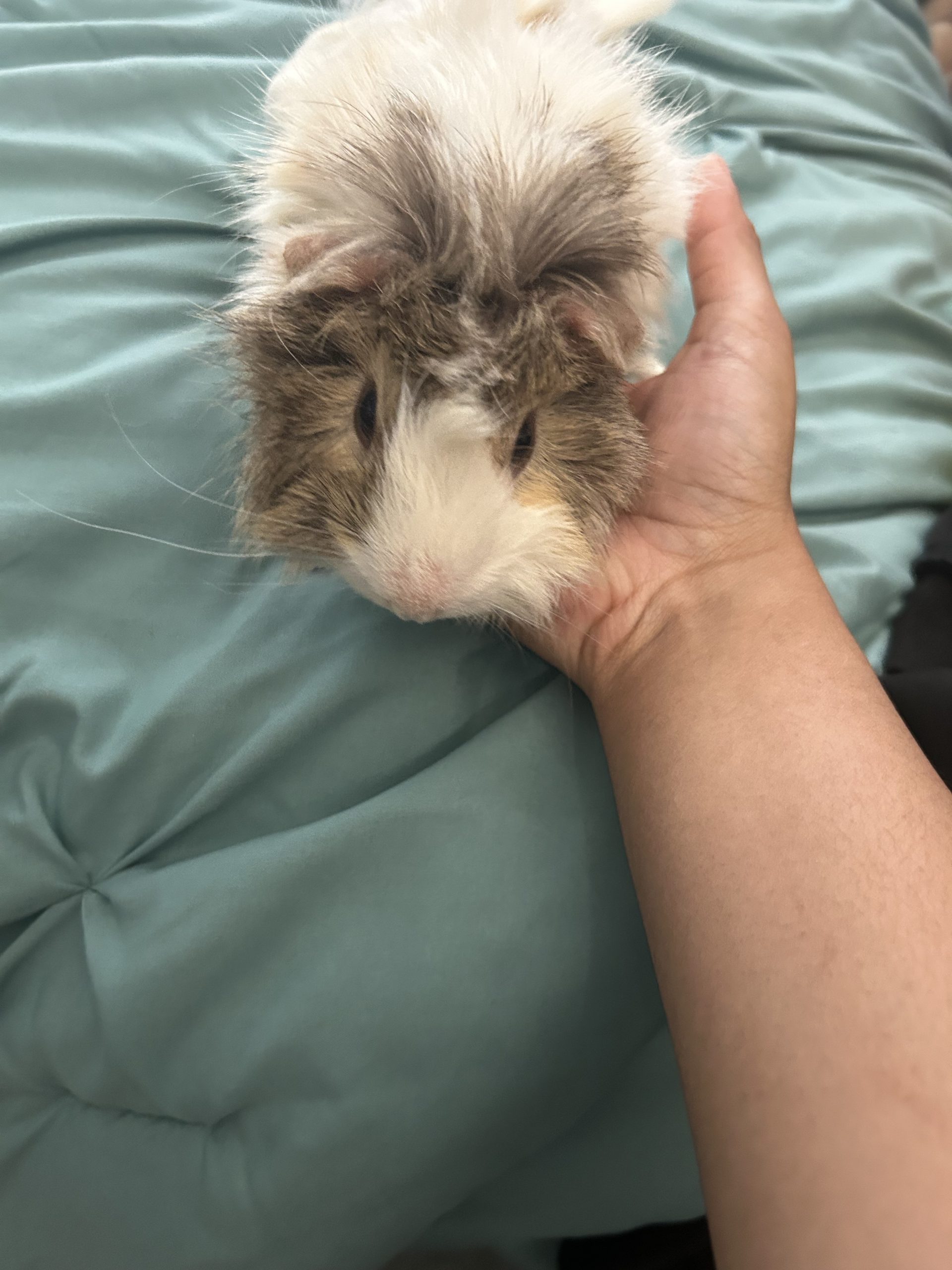 Manny is a 100% indoor Guinea pig and definitely speaks his mind! He currently lives and a 2x5 c&c cage with fleece blankets and wooden/fleece hideouts. He has had watermelon, carrots, and Romain leafs without any harsh reactions and doesn’t like mandarin or refused to try it at the time. He eats oxbow Timothy hay and oxbow adult guinea pig pellets and loves to chew on bamboo or sweet apple sticks!